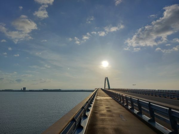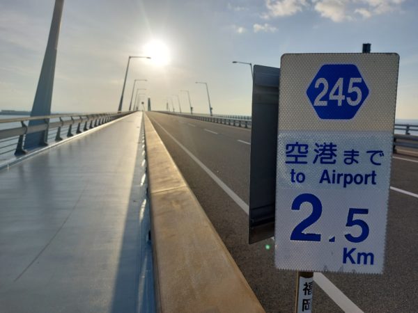 海の上を走る。空港へ向かう橋を走る。